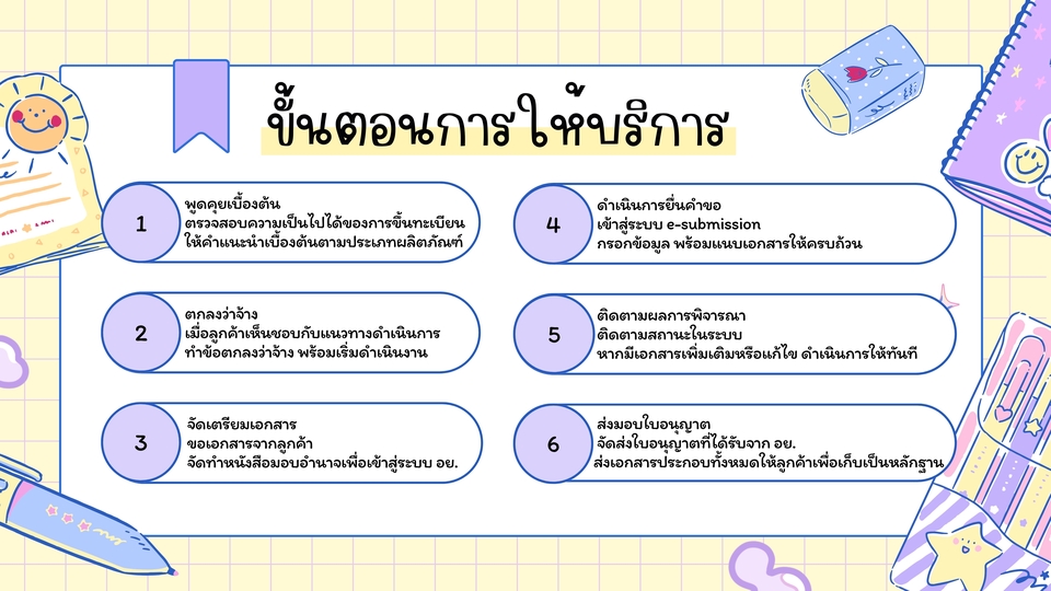 - • 6. แจ้งความคืบหน้าเป็นระยะ และแก้ไขข้อมูลตามที่เจ้าหน้าที่ร้องขอ (ถ้ามี)