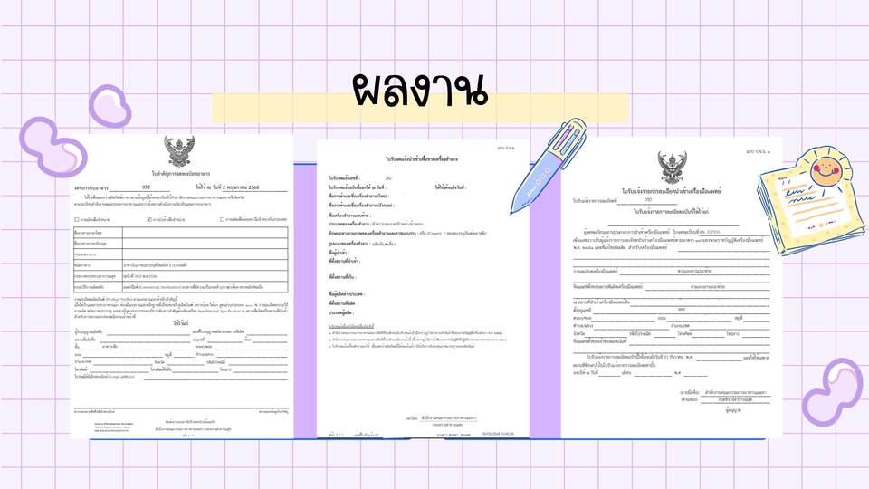 เรามีประสบการณ์ในการให้คำปรึกษาและดำเนินการขอใบอนุญาตจากหน่วยงานราชการ เพื่อให้ผลิตภัณฑ์สามารถจำหน่ายได้อย่างถูกต้องตามกฎหมาย ทั้ง การขึ้นทะเบียน อย. และการขึ้นทะเบียน มอก. เราสามารถดูแลให้ครบทุกขั้นตอน ตั้งแต่การตรวจสอบเอกสาร ประสานงานกับโรงงาน รวบรวมข้อมูล ไปจนถึงยื่นคำขอและติดตามผลอย่างใกล้ชิด เพื่อให้คุณมั่นใจว่าสินค้าถูกต้องตามกฎหมายและพร้อมวางจำหน่ายอย่างมืออาชีพ