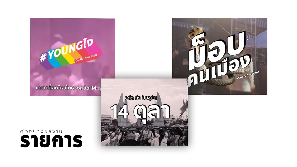 งานโปรเจคกลางๆ เวลาไม่เกิน 10 นาที - เน้นเป็นแนวเรียบง่าย แต่ดูน่าสนใจและหรูหรา - ราคาเป็นกันเอง - ผ่านงานแข่งขันตัดต่อวีดีโอระดับประเทศ - ทำงานเบื้องหลังดาวเดือนคณะรัฐศาสตร์ ขั้นตอนการทำงาน 1. สอบถาม Scope ของงาน แนวงานที่อยากได้ ช่วยคิด Storyboard 2. จะดราฟทุกอย่าง ไม่ว่าจะเสียง ภาพ วีดีโอ เวลา แก้ได้เรื่อยๆจนแบบร่างเป็นที่ต้องการ 3. เมื่อลูกค้าให้ผ่าน จะเริ่มการตัดต่อ โดยลูกค้าต้องส่งไฟล์งานมาเน้น Full HD 4. จะส่งตัว Demo ให้ลูกค้าดูหากพอใจจะรีนเดอร์งานส่งทันที 5. หากไม่ผลใจสามารถแก้งานได้สูงสุดสามครั้งเท่านั้น