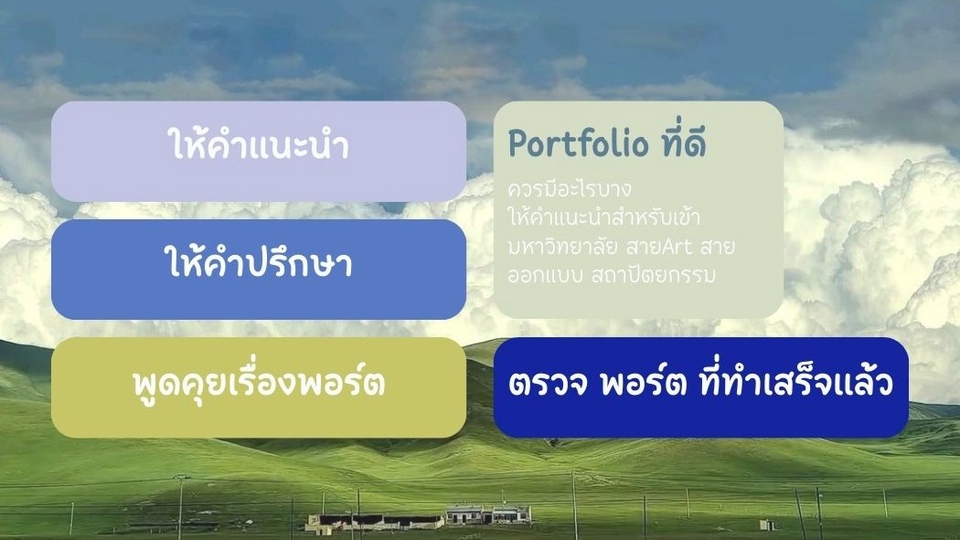 ให้คำแนะนำ/ปรึกษา/ตรวจ Portfolio_Resume เข้ามหาวิทยาลัย สายออกแบบ สายArt สายสถาปัตยกรรม