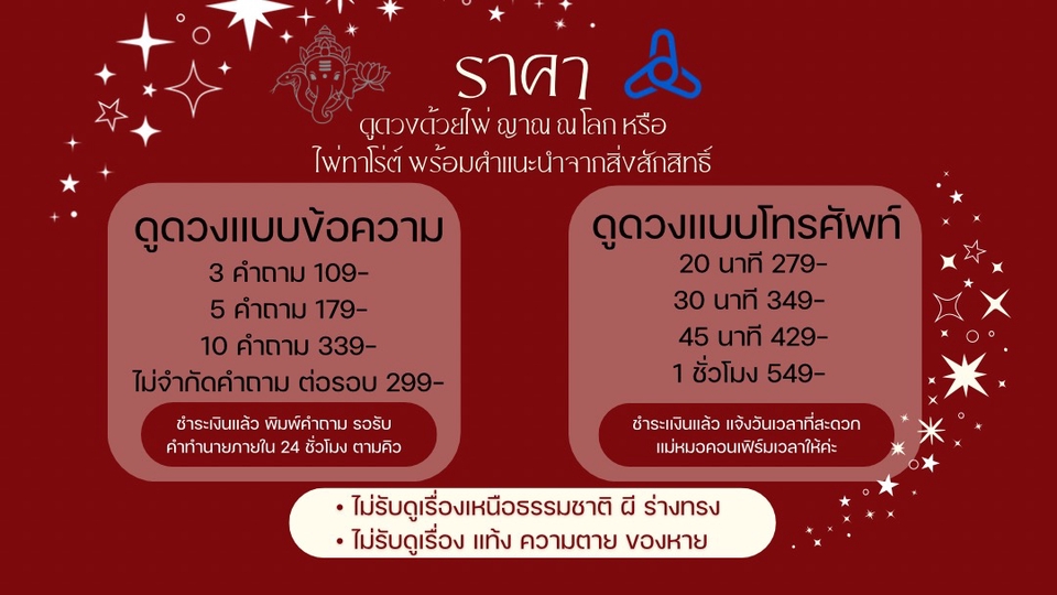 ดูดวงไม่จำกัดครั้ง รายเดือน แบบพิมพ์ พร้อมโทรฟรี 1ชั่วโมง