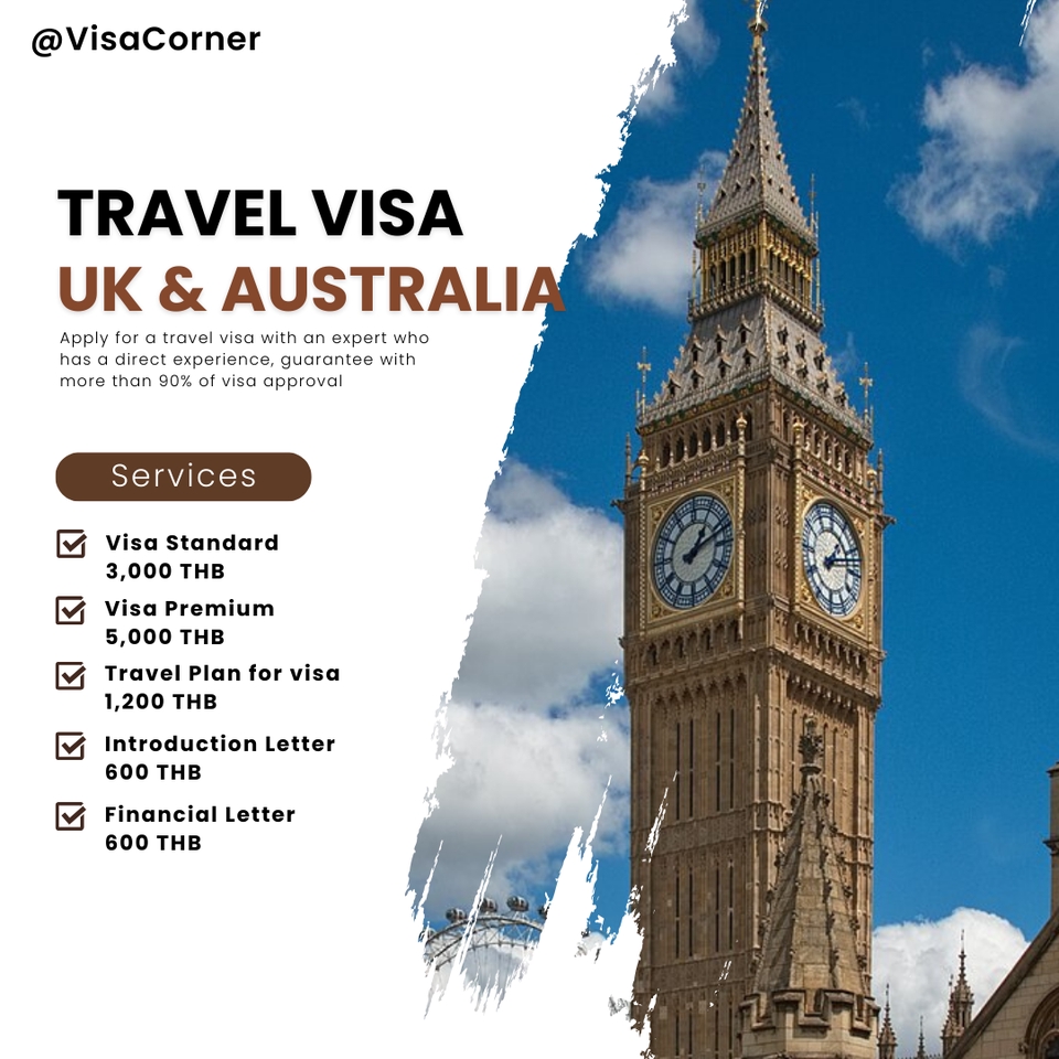 รับปรึกษาทำวีซ่าท่องเที่ยว UK & Australia ครบวงจร จากผู้มีประสบการณ์ตรง การันตีวีซ่าผ่านมากกว่า 90%