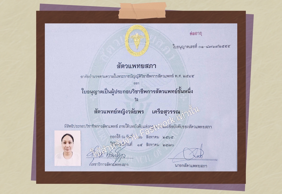 -สัตวแพทย์ชั้นหนึ่ง จบการศึกษาปริญญาตรี คณะสัตวแพทยศาสตร์ ม.เกษตรศาสตร์ -มีใบอนุญาตประกอบโรคศิลป์ทางสัตวแพทย์ -รับปรึกษาปัญหาสุขภาพเกี่ยวกับสัตว์เลี้ยง (สุนัข,แมว) ครอบคลุม ทั้งการเลี้ยง,อาหาร,โรค,การรักษา,การป้องกัน,ยาและการดูแล -สัตว์เลี้ยงมีปัญหา "หาหมอ" VS "ไม่หาหมอ" -ตอบปัญหา/ข้อสงสัย เพิ่มความเข้าใจในการเลี้ยง และการดูแลสัตว์ป่วย **หมายเหตุ การพูดคุยนี้ ไม่สามารถใช้เพื่อทำการวินิจฉัยโรค หรือสั่งจ่ายยาได้ เป็นการพูดคุย ปรึกษาและให้ความรู้ที่ถูกต้องเท่านั้น **การวินิจฉัยยังจำเป็นต้องพาสัตว์เลี้ยงของท่านไปตรวจร่างกายกับสัตวแพทย์เท่านั้น ขั้นตอนการทำงาน 1. นัดวัน,เวลา และแจ้งรายละเอียดของปัญหาเบื้องต้นที่ต้องการพูดคุย 2. พูดคุย และให้การปรึกษา ผ่าน Google Meet หรือ แอปอื่นๆ ที่สะดวก
