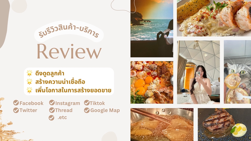 ฿1,000รีวิวแบบเหมา ลง Facebook , IG , Twitter , Google Map (เขียนรีวิว+รูปถ่าย) "3 ที่ (ตามที่ลูกค้าเลือก)" พร้อม #ที่ลูกค้าแจ้ง