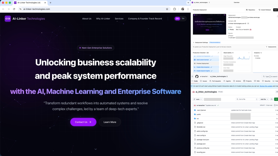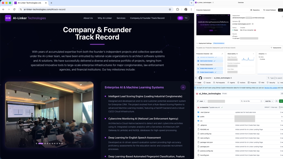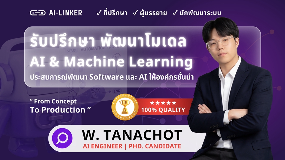 🏆 Profile - มีประสบการณ์พัฒนาระบบ Software และ AI ให้องค์กรชั้นนำ เช่น SCG, MEA, EPPO พร้อมผลงานตีพิมพ์ระดับนานาชาติ (IEEE, Springer) - กำลังศึกษาปริญญาเอก วิศวกรรมไฟฟ้ากำลัง ที่ KMUTNB (ได้รับทุนเต็มจำนวน) - วิทยากรบรรยายและสอนปฏิบัติด้าน AI, Machine Learning ให้มหาวิทยาลัยและหน่วยงานรัฐ - ผู้ก่อตั้ง AI-Linker Technologies Ltd. ——— 📌 Intro - หากยังไม่แน่ใจว่าจะเริ่มยังไง ยินดีให้คำปรึกษาฟรีครับ - รองรับทั้งการพัฒนาระบบจากโครงสร้างมาตรฐาน (Template) เพื่อความรวดเร็วและคุ้มค่า หรือออกแบบใหม่ทั้งหมด (Custom) ตามความต้องการเฉพาะของธุรกิจ - รองรับทั้งงานสเกลเล็ก-ใหญ่ ประเมินงานอย่างสมเหตุสมผล ——— 📌 ให้บริการรับเขียนโปรแกรม พัฒนาระบบ ให้คำปรึกษา และจัดสัมมนา ในหัวข้อดังนี้ 1. AI Solutions & Research - โครงการวิจัย AI ตามมาตรฐานสากล - ออกแบบระบบถาม-ตอบอัจฉริยะจากฐานข้อมูลเฉพาะทาง (RAG), AI Chatbot - ออกแบบกลยุทธ์การนำโมเดลภาษาขนาดใหญ่ (LLM) มาปรับใช้ - วางโครงสร้าง AI Architecture สำหรับงานวิจัย หรือ Workflow ธุรกิจ - พัฒนา Recommendation Systems เช่น ระบบแนะนำสินค้าหรือเนื้อหาตามพฤติกรรมผู้ใช้ - ทำ Prompt Engineering 2. Custom Machine Learning & Deep Learning - ออกแบบ Algorithm และทำระบบวิเคราะห์เชิงพยากรณ์ (Predictive Analytics) | PyTorch, TensorFlow - พยากรณ์ข้อมูลเชิงเวลา (Time-Series Forecasting) - ระบบตรวจหาจุดบกพร่องอัตโนมัติ (Anomaly Detection) ระบบเฝ้าระวังและแจ้งเตือนล่วงหน้า - การวิเคราะห์ข้อความ (NLP, Sentiment Analysis) - พัฒนาแบบจำลองทางคณิตศาสตร์ (Mathematical Modeling) และปรับปรุงประสิทธิภาพโมเดล (Optimization) 3. Computer Vision & Image Processing - ระบบตรวจจับ และระบุชนิด/ตำแหน่งวัตถุอัตโนมัติ (Object Detection) | YOLO, Roboflow - โมเดลสำหรับงานอุตสาหกรรม และการประมวลผลวิดีโอแบบ Real-time - การประยุกต์ใช้ AI ในงานวิศวกรรมเฉพาะทาง และการประมวลผลภาพขั้นสูง ☁️ มีบริการนำระบบขึ้นใช้งานจริงผ่าน Cloud (รันตาม Trigger หรือรัน 24 ชั่วโมง) | Google Cloud, AWS, Vercel, Render, Railway ——— 📨 ทักมาพูดคุยรายละเอียดก่อนได้ครับ - ราคาจากแพ็กเกจเป็นราคาเริ่มต้น โดยจะประเมินราคาตามเนื้องานจริงอย่างสมเหตุสมผล - ยินดีช่วยปรับขอบเขตงาน ให้คุ้มค่าและลงตัวกับงบประมาณที่ตั้งไว้ครับ ——— 📌 ขั้นตอนการทำงาน 1. พูดคุย ประเมินงาน 2. ออกแบบและพัฒนาระบบ 3. ทดสอบและปรับปรุง 4. ส่งมอบและดูแลหลังการขายตามที่มีการตกลงไว้