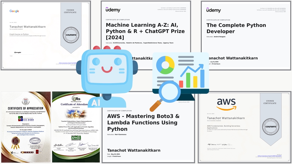 สวัสดีครับ 🙏🏻 ผมกำลังศึกษาระดับชั้น ป.เอก ในสาขาวิศวกรรมไฟฟ้ากำลัง (ได้รับทุนเต็มจำนวน) และเป็นผู้ช่วยนักวิจัยที่ KMUTNB - มีประสบการณ์ด้าน Software/AI Development มากกว่า 3 ปี และได้ร่วมดำเนินโครงการกับองค์กรชั้นนำหลายแห่ง - มีผลงานตีพิมพ์ในวารสารและงานประชุมวิชาการระดับนานาชาติที่เกี่ยวข้อง - เคยเป็นวิทยากรบรรยายและสอนปฏิบัติเรื่อง Data Visualization, Forecasting ที่การไฟฟ้านครหลวง (MEA)