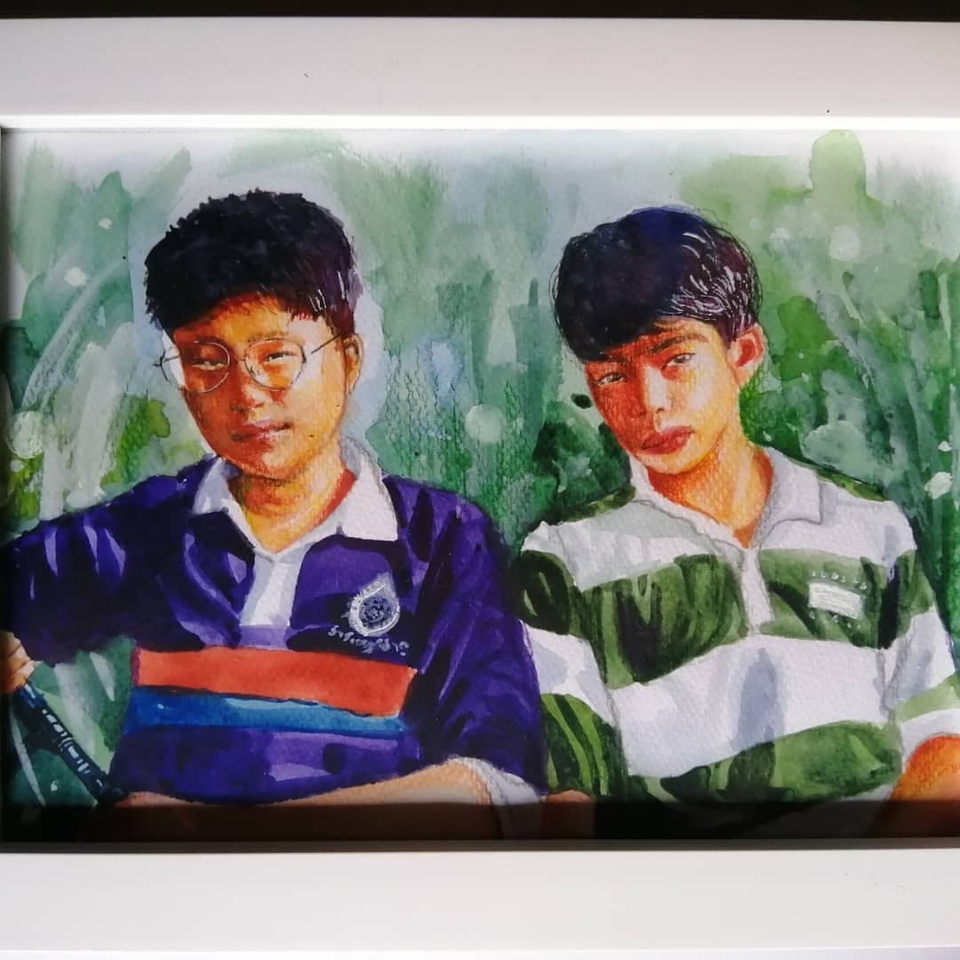 ภาพวาด​สีน้ำ ภาพเหมือน​ (เพิ่มคนละ 100 บาท)​ - ขนาด 5"x7" 280.- เพิ่มกรอบ +60.- - ขนาด 6"x8​" a5 300.- เพิ่ม​กรอบ +70.- - ขนาด 12"x16" a4 450.- เพิ่มกรอบ +100.- เพิ่มพื้นหลัง ข้อความฟรี ขอดูงาน แก้งานได้ ส่ง ลทบ. 40.- ems 60.-