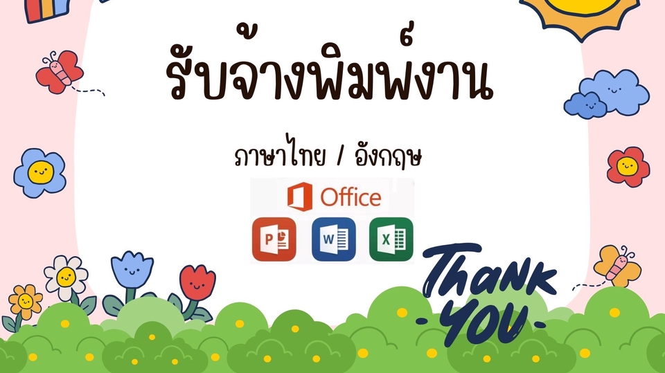 1. รับจ้างพิมพ์งาน 2. รับออกแบบงาน วาดภาพ การบ้านเด็กปฐมวัย 3. รับทำใบเสนอราคา