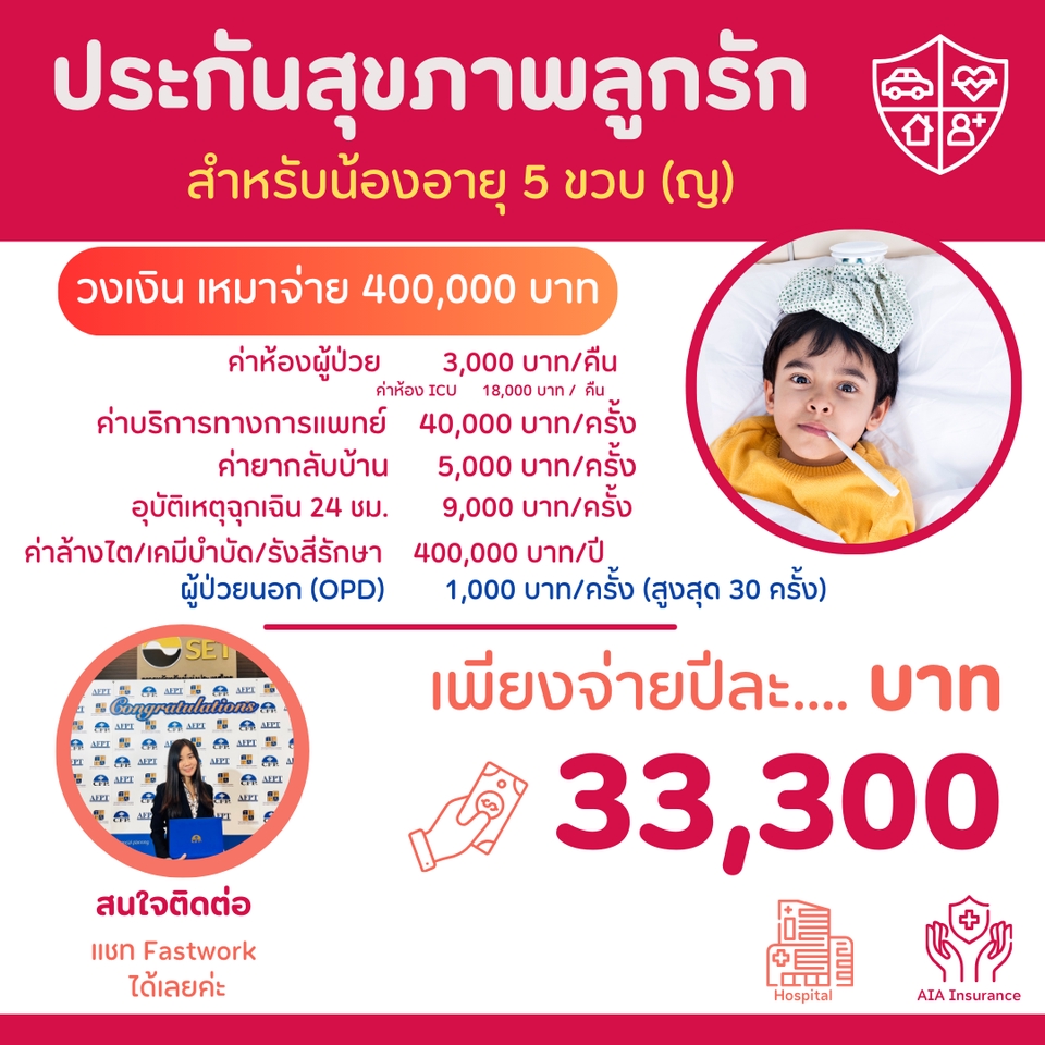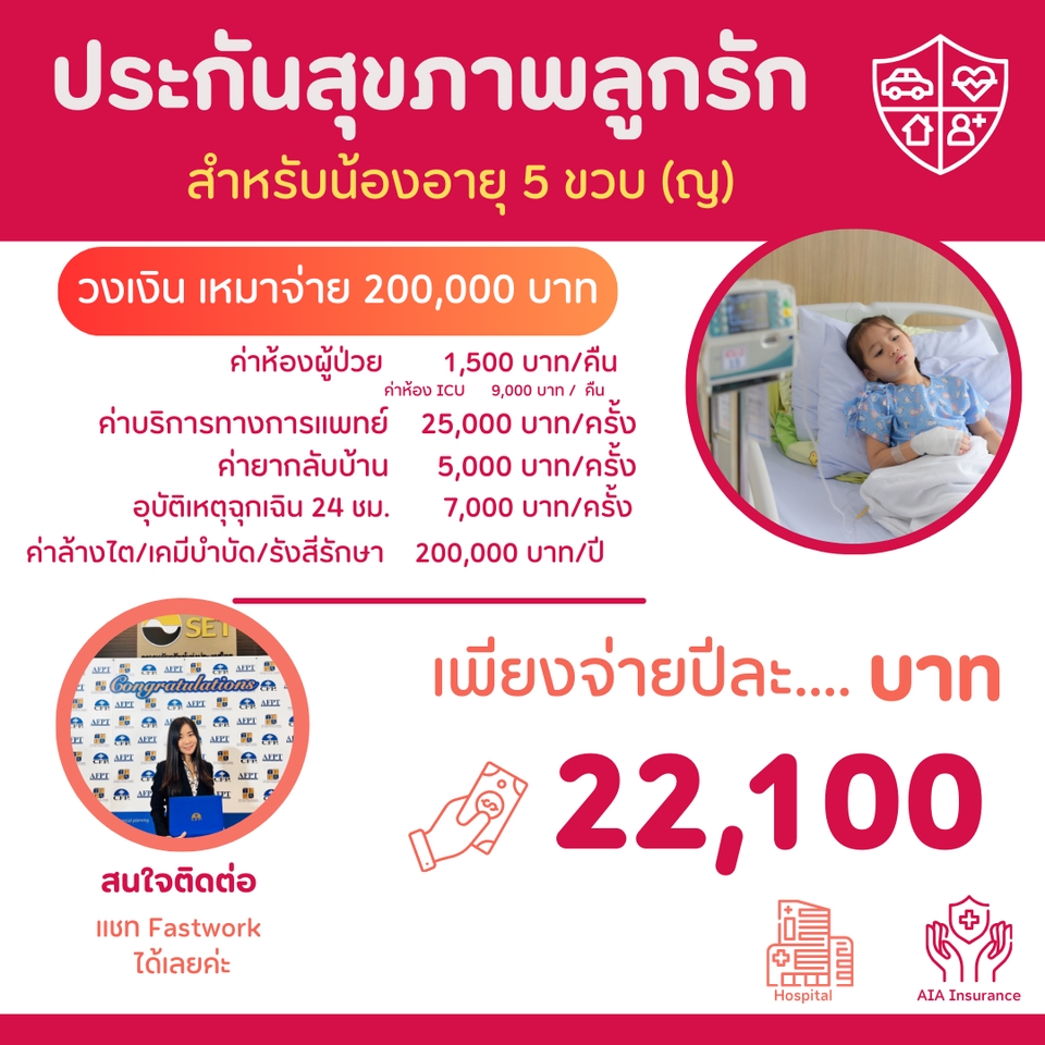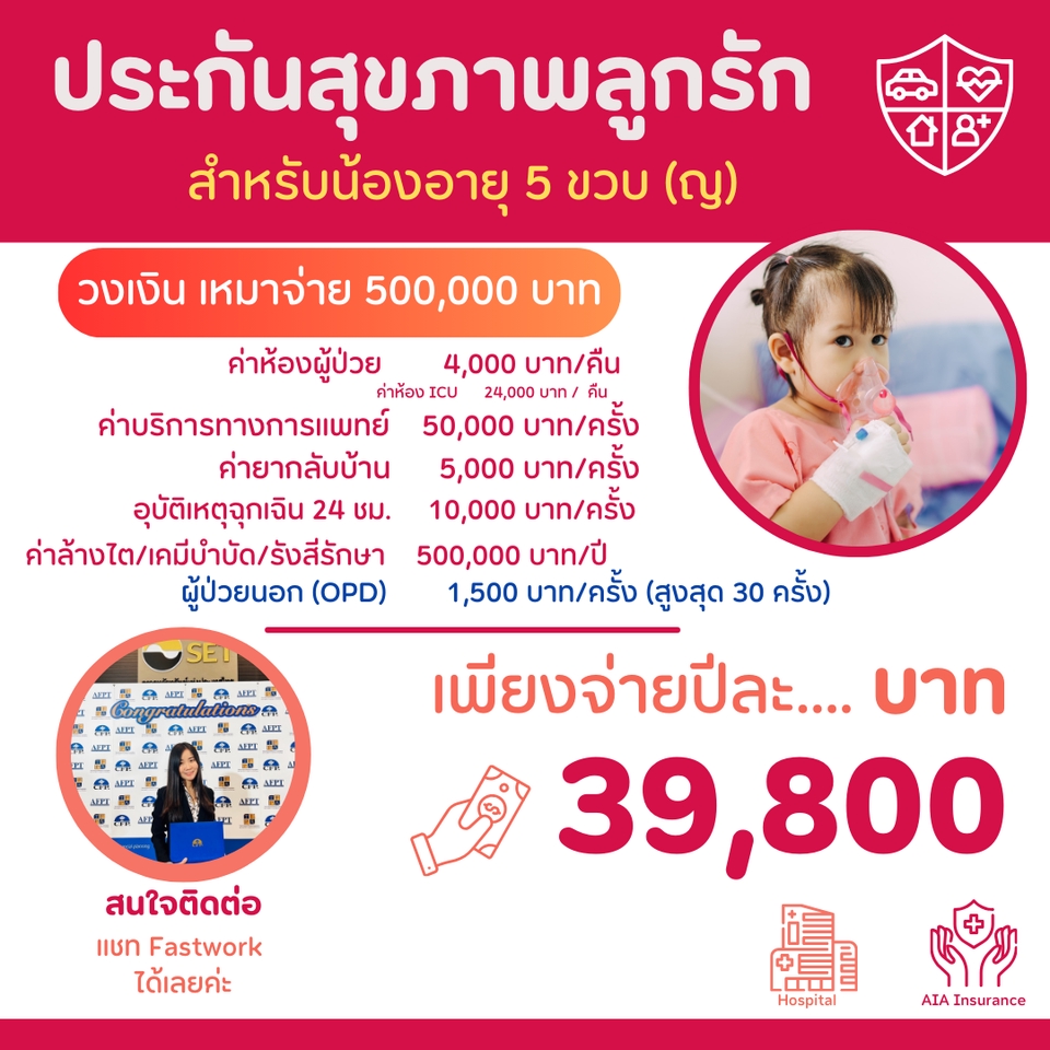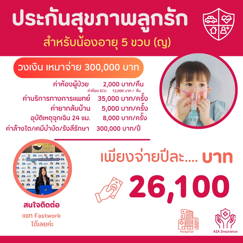 สวัสดีค่ะ 🙏🏻 หนึ่ง วรรณภรณ์ นักวางแผนการเงิน CFP® - ให้คำแนะนำในการวางแผนซื้อประกันดีๆ สักเล่ม โดยมีประสบการณ์ในธุรกิจประกันกว่า 9 ปี มีใบประกอบวิชาชีพตัวแทนประกันชีวิต และใบอนุญาติผู้แนะนำการลงทุน 👉🏻สนใจให้หนึ่งวางแผนประกันรอบด้าน ✨ เช่น ✅ ประกันสุขภาพ ✅ ประกันโรคร้ายแรง ✅ ประกันลดหย่อนภาษี ✅ ประกันบำนาญ ✅ ประกันยูนิตลิงค์ (Unitlink) ✅ ประกันคุ้มครองชีวิต ✅ ประกันคุ้มครองเรื่องมรดก 👉🏻หรืออยากให้ดูความคุ้มครองที่มีอยู่ ว่ามีเพียงพอหรือยังขาดตรงไหนบ้าง …? 📞ใครก็ตาม ที่กำลังมองหาประกันดีๆ สักเล่ม แต่ยังไม่รู้ว่า แบบไหนที่เหมาะสม หรือแบบไหนที่ยังไม่มี ปรึกษาหนึ่งได้นะคะ 👍🏻 ขั้นตอนการทำงาน 1. พูดคุยรายละเอียด/แบบประกันที่ต้องการ ผ่านระบบของ fastwork 2. นัดหมายเพื่อแนะนำแบบประกัน 3. นำเสนอแบบประกันที่เหมาะสม (ใช้เวลา 1-2 ชั่วโมง) 4. ลูกค้าสอบถามข้อมูลหรือข้อสงสัยต่างๆ