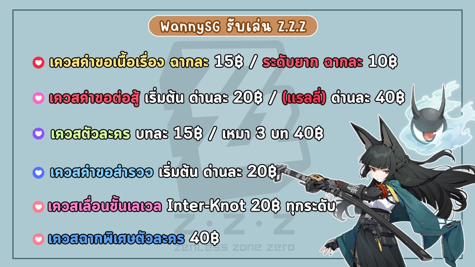 WannySG รับเล่นเกมสารพัด รับทำทุกคอนเทนต์เกม Genshin Impact / Wuthering Wave / Zenless Zone Zero หากลูกค้าสนใจ ทักมาสอบถามรายละเอียดเพิ่มเติมได้น้า 🙏✨