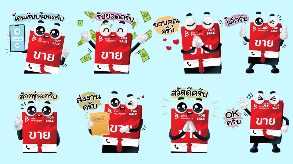 ออกแบบและวาดภาพสติกเกอร์ LINE จำนวน 8 ตัว