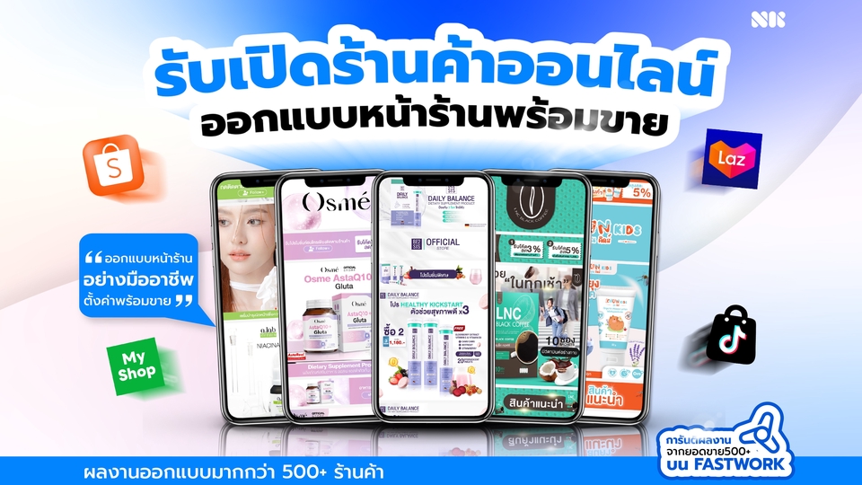 บริการเปิดร้านค้าออนไลน์ครบวงจร Shopee | Lazada | TikTok | MyShop จากมืออาชีพที่มีประสบการณ์จริง! จากยอดขายบน Fastwork กว่า 500+ ร้านค้า ที่ไว้วางใจให้เราช่วยออกแบบหน้าร้านค้า เราพร้อมให้บริการเปิดร้านค้าออนไลน์ พร้อมจัดการระบบหลังบ้านอย่างครบถ้วน เพื่อให้คุณเริ่มต้นธุรกิจได้อย่างมั่นใจ และขายได้ทันทีหลังรับมอบงาน เหมาะสำหรับผู้ที่ต้องการเริ่มต้นธุรกิจ แต่ยังไม่รู้จะเริ่มอย่างไร เราคือทีมงานมืออาชีพที่พร้อมดูแลทุกขั้นตอนให้คุณครบ จบในที่เดียวด้วยประสบการณ์เปิดร้านมากกว่า 600 ร้านค้า ออกแบบผลงานมากกว่า 1,000 ชิ้นงานและลงสินค้าไปแล้วมากกว่า 50,000 รายการ นอกจากนี้ เรายังมีความเชี่ยวชาญในการใช้โปรแกรม Photoshop และ Illustrator เพื่อสร้างงานออกแบบที่มีคุณภาพ ช่วยให้ร้านค้าของคุณดูน่าเชื่อถือ โดดเด่น และเพิ่มโอกาสในการตัดสินใจซื้อจากลูกค้าได้มากยิ่งขึ้น ---------------------- 📌 บริการนี้เหมาะกับใคร 1. ผู้ขายที่ต้องการเปิดร้านค้า / ปรับร้านค้าใหม่ อย่างสวยงาม และดูมืออาชีพ 2. ผู้ขายที่ต้องการสร้างร้านค้าให้โดดเด่นกว่าคู่แข่ง 3. ผู้ขายที่อยากเปิดร้านและได้มืออาชีพ มาจัดการร้านค้า เพื่อให้เกิดยอดขายได้อย่างรวดเร็ว 4. ผู้ขายที่เปิดร้านแล้ว อยากมีที่ปรึกษา สำหรับสอบถามปัญหาหลังส่งมอบงานได้ตลอด ---------------------- 📌 สิ่งที่ลูกค้าจะได้รับเมื่อซื้อแพ็กเกจเรา 1. บริการตั้งค่าพื้นฐานร้านค้า อย่างมืออาชีพ 2. บริการออกแบบภาพสินค้า และหน้าร้าน อย่างมืออาชีพ จากประสบการณ์ออกแบบภาพสินค้า มากกว่า 1,000 ชิ้น 3. บริการจัดโปรโมชั่นกระตุ้นยอดขาย / โค้ดส่วนลด 4. บริการแนะนำการใช้งานสำหรับผู้ขายใหม่ ให้สามารถดูแลร้านค้าต่อได้ 5. บริการให้คำปรึกษา ปัญหาร้านค้า ที่อาจจะเกิดขึ้นในอนาคต เพื่อให้ผู้ขายมั่นใจจนขายได้ ---------------------- เราคือฟรีเเลนซ์มืออาชีพ ที่มีทักษะความสามารถ และมียอดขายบน Fastwork รวมทุกงานมากกว่า 700+ งาน **สามารถดูผลงาน ใบอนุญาตทักษะ และรีวิว ได้จากหน้าโปรไฟล์ฟรีแลนซ์**
