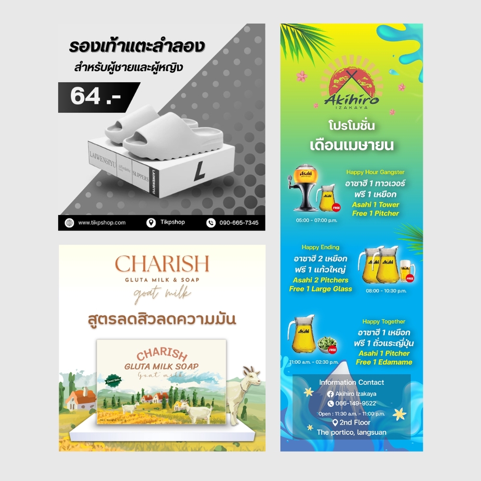 ออกแบบ แบนเนอร์, โปสเตอร์, โบรชัวร์, เมนู, ป้ายไวนิล