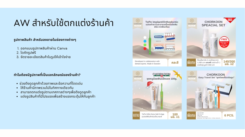 ฿8,500PLAN B : (สำหรับ 1 ร้านค้า / แพลทฟอร์ม) รายเดือน 1. ลงสินค้าได้สูงสุดไม่เกิน 100 sku (พร้อมรายละเอียด+ตัวเลือกสินค้า) 2. ตกแต่งหน้าร้าน + จัดหมวดหมู่ร้านค้าตามบรีฟลูกค้า 3. เข้าร่วมแคมเปญใหญ่ประจำเดือน + Flashsale 4. สร้างโปรโมชั่น add on deal, bundle deal, โค้ดส่วนลด, โค้ดส่วนลดสำหรับผู้ติดตาม 5. ดูแล Keyword Ad. ปรับปรุงคีย์เวิร์ด 6. รายงานทางการเงินรายเดือนเป็นไฟล์ Excel และ PDF 7. บริการดูแลระบบหลังบ้านทั้งระบบ