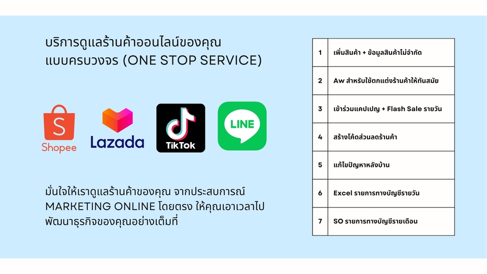 บริการดูแลร้านค้าออนไลน์ครบวงจร (ตกแต่งร้าน/สรุปยอดขาย/ทำบัญชีร้านค้า/ดูแลปัญหาระบบหลังบ้าน)