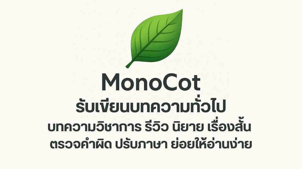 รับเขียนบทความทั่วไปทุกแนว (ไม่เน้น SEO ก็ได้) เช่น บทความแนะนำสินค้า รีวิว ไลฟ์สไตล์ สุขภาพ การศึกษา ฯลฯ ถ้ามีงานเขียนแล้ว สามารถรับตรวจคำ แก้สำนวน ให้เนื้อหาอ่านลื่นขึ้น เป็นธรรมชาติ และตรงกลุ่มเป้าหมาย เหมาะสำหรับคนที่มีเนื้อหาในใจ แต่ไม่มั่นใจว่าจะเขียนยังไงให้อ่านแล้วน่าอ่าน หรือกำลังหาคนช่วยปรับสไตล์ให้ตรงแพลตฟอร์ม (เว็บ / เพจ / โบรชัวร์ ฯลฯ)