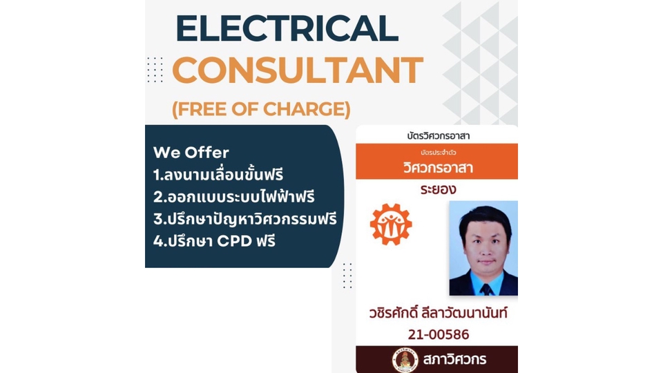 ผมเป็นวิศวกรไฟฟ้า ได้รับใบอนุญาตประกอบวิชาชีพวิศวกรรม(วุฒิวิศวกรไฟฟ้า) มีความเชี่ยวชาญในการออกแบบและควบคุมการติดตั้งระบบไฟฟ้า
