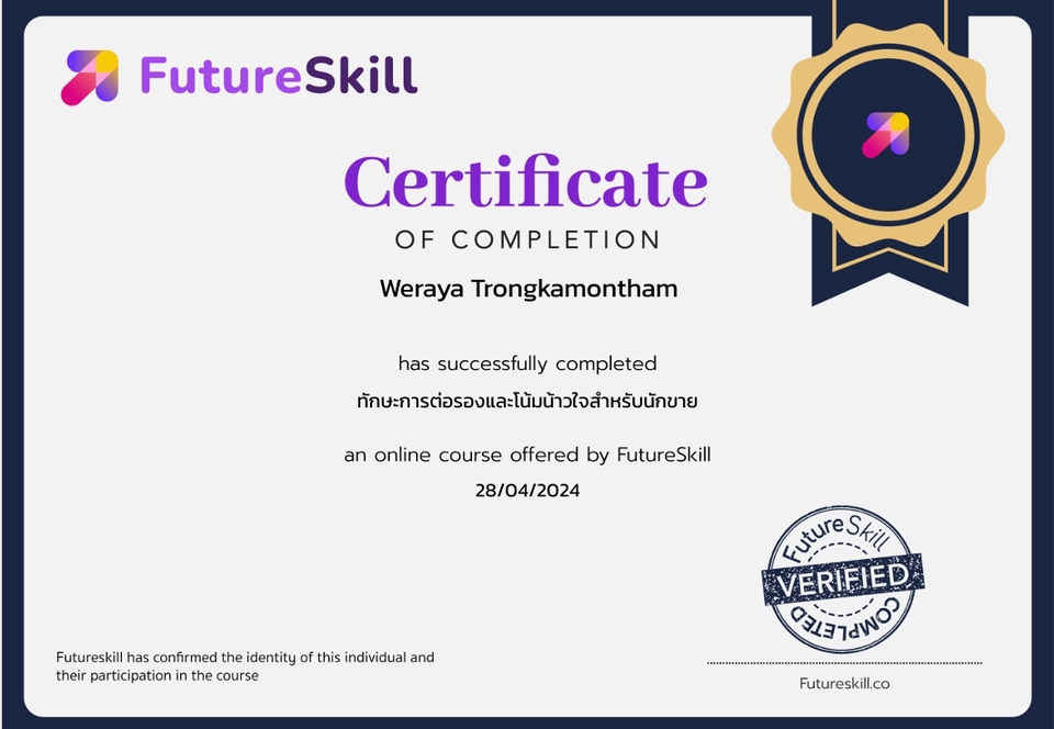 มีมนุษย์สัมพันธ์ที่ดี มีความถนัดเรื่องของงานขาย และการประสานงาน มีประสบการณ์ทางด้านขายสินค้าผ่านทางทีวีกว่าสิบปี และมีประสบการณ์ด้านออนไลน์ในส่วนของเฟสบุ๊คและติ๊กต๊อก