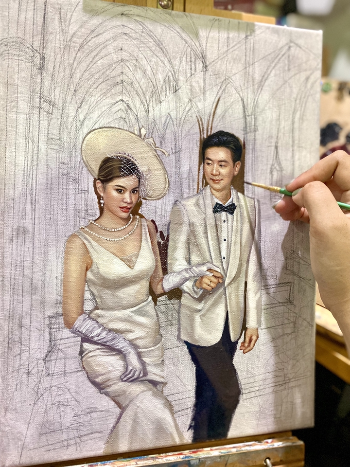 -ภาพวาดสีน้ำมันบนเฟรมผ้าใบ เหมาะกับเป็นของขวัญในโอกาสสำคัญต่างๆหรือเก็บความทรงจำในรูปแบบภาพวาดสีน้ำมัน เปี่ยมไปด้วยคุณค่าและความหมายที่มากมาย ใช้อุปกรณ์เกรด artists สอบถามรายละเอียดก่อนได้ยินดีให้คำปรึกษาค่ะ ขั้นตอนการทำงาน 1. ลูกค้าแจ้งรายละเอียดที่ต้องการ (เพิ่มข้อความ, พื้นหลังได้ค่ะ) 2. ชำระเงินแล้วจึงเริ่มงาน 3. เมื่อภาพเสร็จแล้วส่งให้ลูกค้าดูทางภาพถ่ายเผื่อต้องการปรับแต่ง 4. เมื่อคอนเฟิร์มแล้ว ( รอสีแห้งสนิท + เคลือบภาพ 2-3 วันค่ะ) จึงจัดส่งทาง Flash Express หรือแมสเซนเจอร์ lalamove ค่ะ
