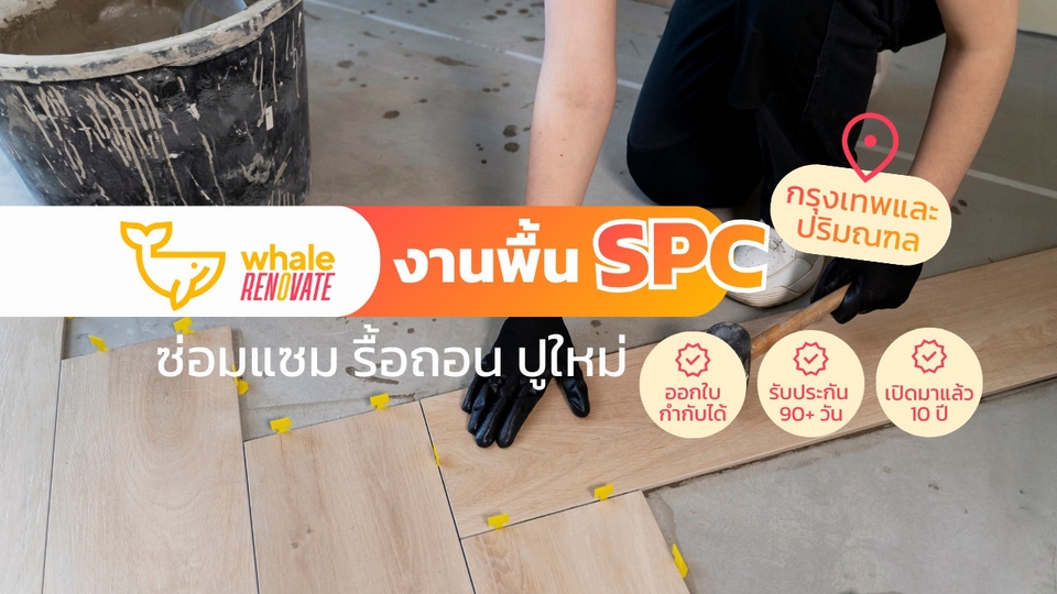 บริการซ่อมแซมหรือปูใหม่พื้นกระเบื้องยาง SPC งานนี้เป็นงานที่ต้องเข้าสำรวจหน้างานเพื่อประเมินราคาเท่านั้น --------- เวล รีโนเวท ทำธุรกิจซ่อมบ้านและคอนโดมากว่า 10 ปี - ซื่อสัตย์ ไม่ลดสเปค ไม่ทิ้งงาน - มีทีมงานดูแล ไม่ต้องคุยกับช่างโดยตรง (ลดปัญหาการทะเลาะกับช่าง) - รับประกันงานทุกงานที่จ้างผ่านบริษัท --------- ขั้นตอนการทำงาน 1. เลือกบริการผ่าน Fastwork 2. ทักแชทส่งรายละเอียดงาน ที่อยู่ปักหมุด และเบอร์ติดต่อกลับ 3. ทีมงานส่งปรึกษาช่างและติดต่อลูกค้ากลับเพื่อคอนเฟิร์ม (บางงานทางบริษัทไม่ได้รับค่ะ) 4. ทำนัดเข้าสำรวจหน้างานเพื่อรับบรีฟและดูรายละเอียดงานจริง 5. ลูกค้าชำระเงินผ่าน Fastwork 6. ทีมงานเข้าสำรวจหน้างานและรับบรีฟ 7. ทีมงานทำรายละเอียดและเสนอราคางานทั้งหมดให้พิจารณา 8. ลูกค้าชำระเงิน 9. ทีมช่างเข้าให้บริการ 10. งานจบลูกค้าตรวจสอบ และชำระเงินที่เหลือ (หากมี) 11. แอดมินส่งปิดงานในระบบ Fastwork ---------