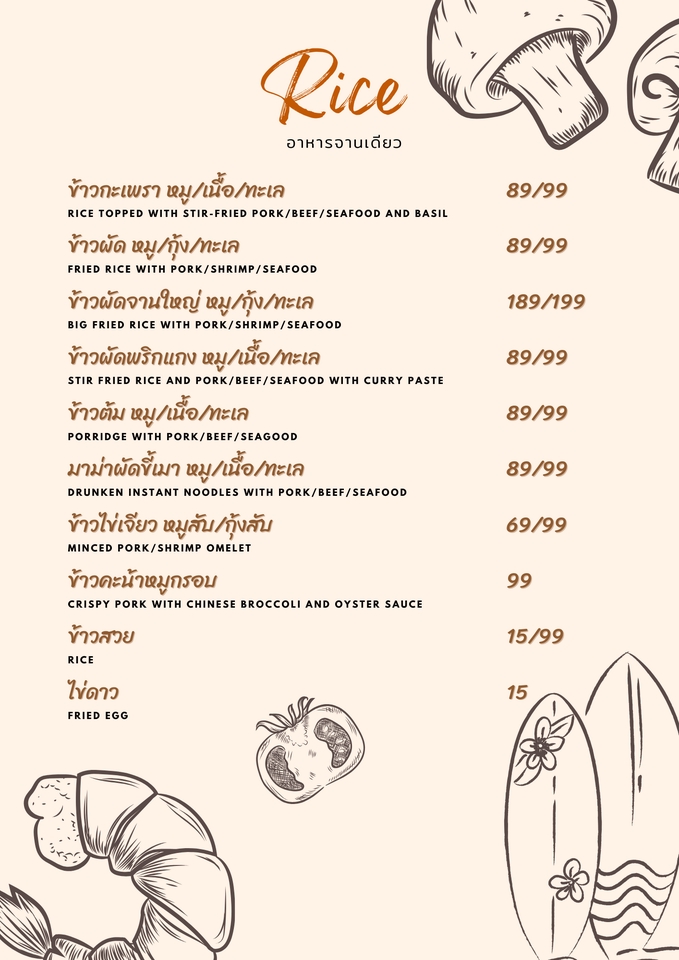 การออกแบบเมนูสำหรับร้านอาหาร lalala workpoint โดย theme ของการออกแบบจะเกี่ยวกับ beach จะมีหลายหลายเมนู และแยก category ให้ พร้อมแปลทั้งภาษาไทยภาษาอังกฤษ ขั้นตอนการทำงาน 1. บรีฟงานและบอกคอนเซปที่ต้องการ 2. ส่งรูปที่ต้องการใส่ในงานมา 3. เริ่มงาน 4. ส่งเช็ค 5. clear