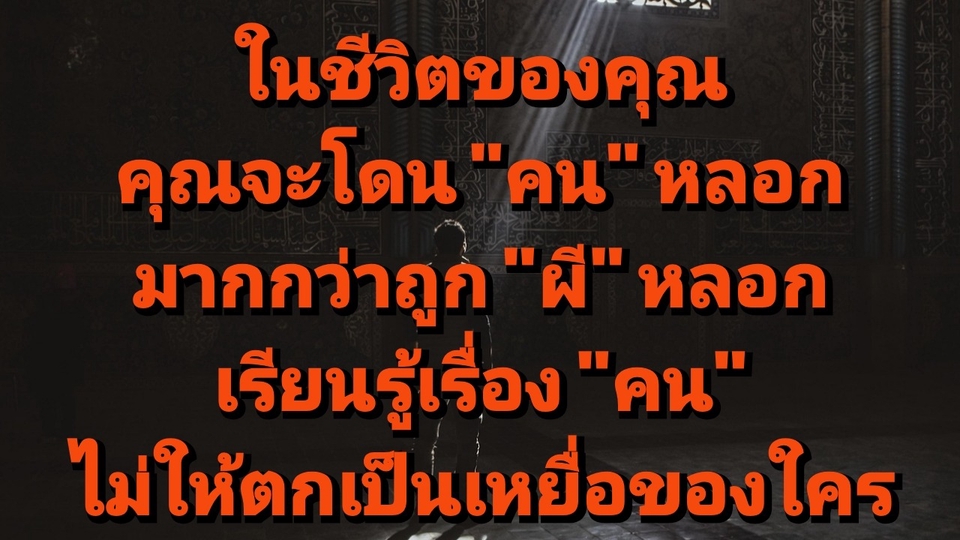 เรียนรู้ "คน" ฉบับเอาตัวรอด ทำไมต้องรู้เพื่อเอาตัวรอด? เพราะในชีวิตของคุณ คุณมีโอกาสที่จะถูกผีหลอกน้อยกว่าถูกคนหลอก คุณไม่สามารถหลีกเลี่ยงการมีปฏิสัมพันธ์กับคนอื่นๆ ได้ และคุณไม่สามารถรู้ได้เลยว่า คนที่เข้ามาในชีวิตของคุณมีจุดประสงค์อะไร เป็นมิตรหรือเป็นศัตรู คุณจึงจำเป็นต้องรู้ทัน "คน" เพื่อ - ไม่ให้ตกเป็นเหยื่ออาชญากรรม - ไม่ให้ถูกหลอกลวงทรัพย์สิน - ไม่ให้เสียเวลากับความสัมพันธ์ - ไม่ให้เสียเวลาอันมีค่าในชีวิต - ไม่ให้ถูกใช้อย่างไร้คุณค่า นี่คือความเสียหายหลักๆ ที่จะเกิดขึ้น หากคุณไม่รู้ทัน "คน" ด้วยประสบการณ์การทำงานกว่า 10 ปี ในองค์กรเอกชนระดับประเทศในด้านการจัดการความมั่นคง ขั้นตอนการทำงาน นัดเวลาและสอนทักษะวิชาพร้อมคำปรึกษาผ่านทางโปรแกรม social ตามที่ลูกค้าสะดวก