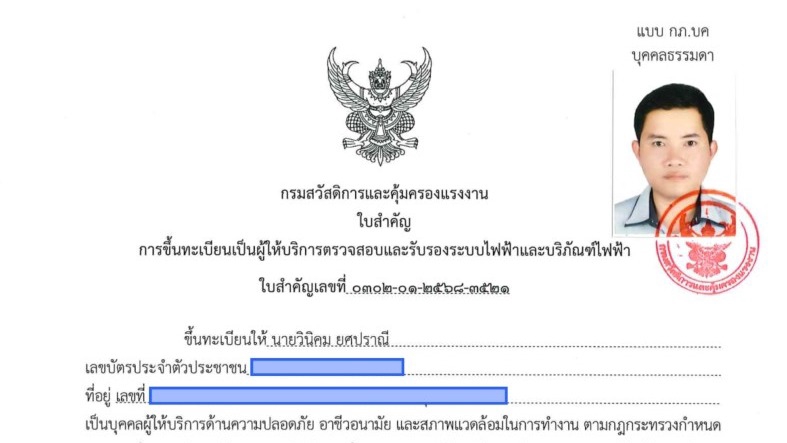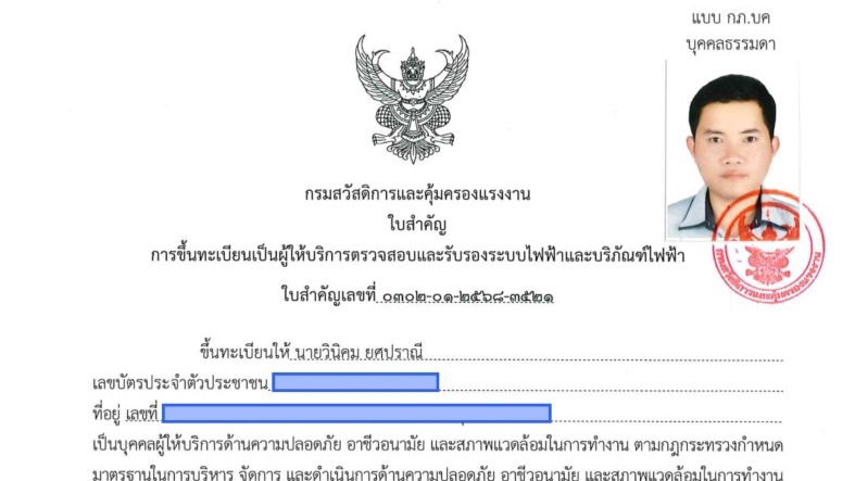 รับตรวจสอบและรับรองระบบไฟฟ้า ประจำปี ตามมาตรา 9 กรมสวัสดิ์