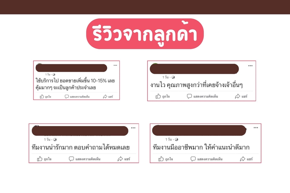 ร้านค้าใหม่ ทำการตลาดแบบไหนให้ขายดี✨ ปัญหานี้เราช่วยได้ ✨ ⭐️การสร้างความน่าเชื่อถือของร้านค้าและองค์กรเป็นส่วนสำคัญมากในการสร้างฐานลูกค้าและยอดขาย ⭐️ถ้าสินค้าและร้านค้ามีรีวิวที่ดี มีคอมเม้นต์คุณภาพที่ช่วยสร้างภาพลักษณ์ ก็จะช่วยเพิ่มยอดขายได้มากขึ้น📝 🎀 การเพิ่มคอมเม้นต์ใต้โพส ยังช่วยให้การยิงแอดง่ายและผลมากยิ่งขึ้น เพราะคอมเม้นตืเชิงบวก สามารถดึงดูดความเชื่อใจและความต้องการของลูกค้าได้ 👩🏼💻บริการเพิ่มคอมเม้นต์ Facebook Instagram ✅คอมเม้นต์ คนไทยล้วน 100% สามารถเลือกเพศได้ ว่าต้องการ ผู้หญิงหรือผู้ชาย ✅บริการของเราไม่ได้ใช้บอทในการเขียนคอมเม้นหรือรีวิว ✅ลูกค้ากำหนดข้อความเองได้ ต้องการให้รีวิว/คอมเม้นต์แบบไหน ลูกค้าเขียนให้เราได้เลย ✅ลูกค้าต้องการให้ทางเราเขียนรีวิว/คอมเม้นต์ เชิงบวก ให้สอดคล้องกับแบรนด์และสินค้าให้กับลูกค้า (มีค่าบริการเพิ่ม) ✅ทุกบริการของเราปลอดภัย คุณภาพสูง ✅ไม่ใช้รหัสในการทำงาน ✅เก็บข้อมูลของลูกค้าเป็นความลับ ✅การันตียอดครบตามจำนวนที่ตกลง ขั้นตอนการทำงาน 1. คุยรายละเอียดงานต่างๆ ฟรีแลนซ์เสนอราคา 2. ลูกค้าชำระเงินเข้าระบบ ฟรีแลนช์เริ่มงาน 3. หลังชำระเงิน ดำเนินการทันที ( ระยะเวลาขึ้นอยู่กับจำนวนคอมเม้นต์และรีวิว ) 4. ลูกค้าตรวจเช็คงานก่อนกดอนุมัติงาน 5. สรุปงานและจบงาน