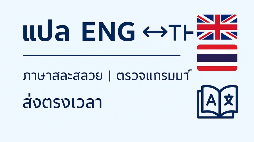 รับแปลภาษา อังกฤษ ↔ ไทย,ไทย ↔ อังกฤษ ทุกประเภท ✅ ภาษาธรรมชาติ ไม่ทื่อ ไม่แข็ง ✅ ตรวจแกรมมาร์ก่อนส่ง ✅ ใช้ได้กับเอกสารทั่วไป โพสต์ขายของ เมนูอาหาร บทสนทนา ฯลฯ สิ่งที่คุณจะได้รับ: •ไฟล์แปล (Word หรือ Google Docs) •ส่งงานตรงเวลา •แก้ไขงานได้ 1-2 ครั้ง ขั้นตอนการทำงาน 1. ลูกค้าแจ้งรายละเอียดงานที่ต้องการจ้าง 2. ฟรีแลนซ์แจ้งราคาและวันที่ส่งงาน 3. ลูกค้าชำระเงินผ่านระบบ 4. ฟรีแลนซ์เริ่มงาน 5. ฟรีแลนซ์ส่งงานให้ลูกค้าตรวจสอบ 6. ลูกค้าแจ้งแก้ไขงาน (หากมี) 7. ฟรีแลนซ์ส่งงาน final ให้ลูกค้าตรวจสอบ 8. ลูกค้าอนุมัติงาน final ในระบบ