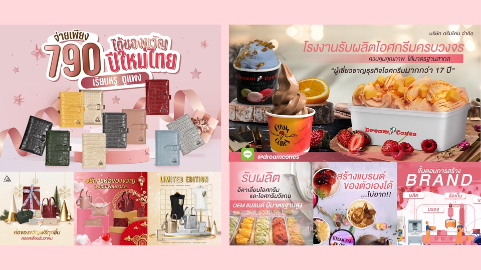 สินค้าดีอย่างเดียวไม่พอ ต้องมีคอนเทนต์ปังๆ พร้อมภาพแบนเนอร์สวยๆ เพื่อดึงดูดลูกค้า! เราพร้อมดูแลแบบครบวงจร มีไอเดียแต่ถ่ายทอดออกมาไม่ได้ เรายินดีสร้างสรรค์ให้ไอเดียของคุณเป็นจริง ขั้นตอนการทำงาน 1. คุยรายละเอียด Concept ของแบรนด์ 2. ลูกค้าส่งตัวอย่างงานที่ชอบ (ถ้ามี) และสรุปงานทุกชิ้นอย่างละเอียด 3. เสนอหัวข้อคอนเทนต์พร้อมวางแผนการออกแบบ 4. เริ่มงานออกแบบและทยอยส่งโพสต์ตามระยะเวลาที่ตกลง สามารถแก้ไขงานออกแบบได้ 3 ครั้งต่อชิ้นงาน 5. เมื่อลูกค้าคอนเฟิร์มงานแล้ว ไม่สามารถแก้ไขได้แล้ว หากมีความจำเป็นต้องแก้ไขจะมีค่าบริการแก้ไข 300 บาท/ครั้ง 6. ส่งงานเป็นไฟล์ภาพ jpg (หากต้องการไฟล์ Ai กรุณาแจ้งก่อนเริ่มงาน และมีค่าบริการเพิ่ม 400 บาทต่อไฟล์/ชิ้น)