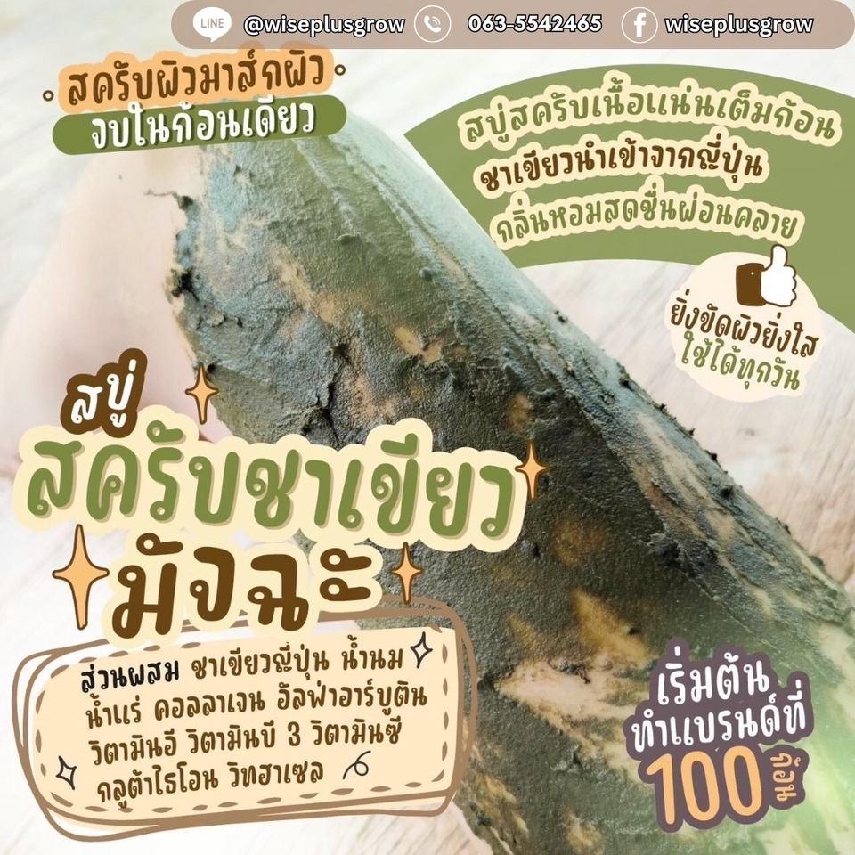ผลิตแบรนด์สบู่สครับ กับ WISE PLUS GROW 🧼✨ 🌟 โรงงานมาตรฐานสากล ได้รับรอง GMP & อย. มั่นใจได้ทั้งคุณภาพและความปลอดภัย 🌿 สูตรสบู่สครับหลากหลาย สครับผิวขาวกระจ่างใส สครับลดสิวที่หลัง / รอยดำ สครับสมุนไพรไทย (ขมิ้น, มะขาม, มังคุด ฯลฯ) สครับเกลือ / น้ำตาล / กาแฟ / ชาเขียว ปรับสูตรเฉพาะให้ตรงกับคอนเซปต์แบรนด์ได้ 📦 บริการครบวงจร (One Stop Service) คิดสูตร ➝ ทำเทสเตอร์ ➝ จดแจ้ง อย. ➝ ออกแบบบรรจุภัณฑ์ ➝ ผลิตจริง ➝ ส่งตรงถึงลูกค้า 💰 เริ่มต้นไม่สูง รองรับการผลิตตั้งแต่ MOQ ขั้นต่ำ เหมาะทั้งผู้เริ่มต้นและผู้ที่ต้องการขยายตลาด ✅ รับประกันคุณภาพ ใช้สารสกัดแท้ ผิวปลอดภัย มีเอกสาร Certificate ยืนยัน 📈 ทีมการตลาดช่วยดูแล ให้คำปรึกษาการสร้างแบรนด์ และกลยุทธ์การขาย
