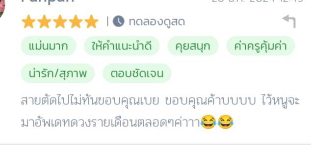 ฿2991.ดูดวงสด ภายในเวลา 30 นาที เป็นการคอลคุยกัน 2.ใช้ไพ่ออราเคิล ไพ่รูนส์ เลขศาสตร์ ในการทำนาย 3.ถามได้ทุกเรื่อง ไม่จำกัดคำถาม 4.ดูพื้นดวงด้วยไพ่และตัวเลข 5.ดูดวงชีวิต ภายใน6เดือน
