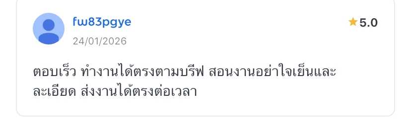 รายละเอียดงาน (Job Description) 🐍 สอนภาษา Python สำหรับผู้เริ่มต้น (Beginner Friendly) ออกแบบการเรียนการสอนสำหรับผู้ที่ไม่มีพื้นฐานการเขียนโปรแกรมมาก่อน อธิบายเข้าใจง่าย เรียนเป็นขั้นตอน สามารถนำไปใช้งานได้จริง ไม่จำเป็นต้องมีความรู้ด้านโค้ดมาก่อน 📘 ปูพื้นฐานการเขียนโปรแกรม (Programming Fundamentals) สอนตั้งแต่พื้นฐาน เช่น ตัวแปร (Variable) ชนิดข้อมูล (Data Type) เงื่อนไข (If-Else) ลูป (Loop) และฟังก์ชัน (Function) พร้อมตัวอย่างประกอบและแบบฝึกหัด 🧪 ฝึกเขียนโค้ดจากตัวอย่างจริง (Hands-on Practice) ฝึกเขียนโค้ดจากโจทย์และสถานการณ์จริง เพื่อเสริมความเข้าใจและนำไปต่อยอดได้ด้วยตนเอง ⚙️ แนะนำเครื่องมือและการตั้งค่า (Setup & Tools) สอนการติดตั้ง Python และการใช้งานเครื่องมือพื้นฐานที่จำเป็นสำหรับการเริ่มต้นเขียนโปรแกรม ⸻ 🧑💻 ประสบการณ์ (Experience) มีประสบการณ์ด้านการเขียนโปรแกรมและสอน Python สำหรับผู้เริ่มต้น มีประสบการณ์ในการสอนภาษา Python สำหรับผู้เริ่มต้น และสอนนักเรียนระดับชั้น มัธยมศึกษาปีที่ 6 จำนวน 30 กว่าคน ในรายวิชา Python เบื้องต้น มีประสบการณ์สอน แบบตัวต่อตัว (Private Class) ปรับเนื้อหาให้เหมาะกับผู้เรียนแต่ละคน สามารถอธิบายเนื้อหาให้เข้าใจง่าย เหมาะสำหรับผู้ที่ไม่มีพื้นฐานมาก่อน มีแนวทางการสอนที่เหมาะกับผู้เรียนทุกวัย 📌 ตัวอย่างเนื้อหาที่สอน 📍 Python เบื้องต้นสำหรับผู้ไม่มีพื้นฐาน 📍 การคิดเชิงตรรกะ (Logical Thinking) 📍 การเขียนโปรแกรมเพื่อใช้งานจริง ⸻ 📝 ขั้นตอนการทำงาน (Workflow) พูดคุยเพื่อทราบเป้าหมายและระดับของผู้เรียน วางแผนบทเรียนให้เหมาะกับผู้เรียนแต่ละคน เริ่มสอนทีละขั้น พร้อมฝึกปฏิบัติจริง สรุปบทเรียนและแนะนำแนวทางฝึกต่อ 📌รายระเอียดเพิ่มเติมสามารถติดต่อเข้ามาคุยกันก่อนได้ครับ
