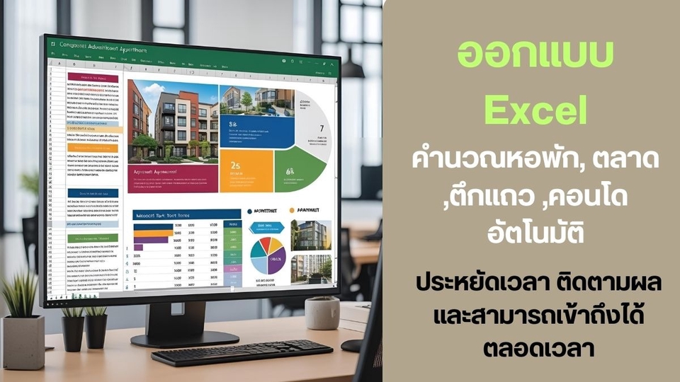 ออกแบบ Excel คำนวณค่าหอพัก ตลาด อาคารพาณิชย์ รายเดือน