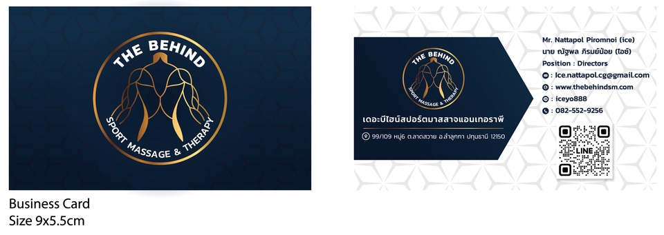 จากผลงานเป็นการออกแบบใน Concept "นวดเพื่อการกีฬา" ออกแบบให้สื่อถึงกล้ามเนื้อส่วนต่างๆ และสีที่ใช้สื่อถึงความ Luxury และสามารถนำไปใช้ก็สื่ออื่นๆได้ง่าย ขั้นตอนการทำงาน 1. รับ Brief และรายละเอียดต่างๆ ลูกค้า 2. ส่ง Reference 3. ส่ง Draf แรก เพื่อตรวจสอบ 4. ยื่นยัน Final Artwork 5. Package files เพื่อส่งผลิต