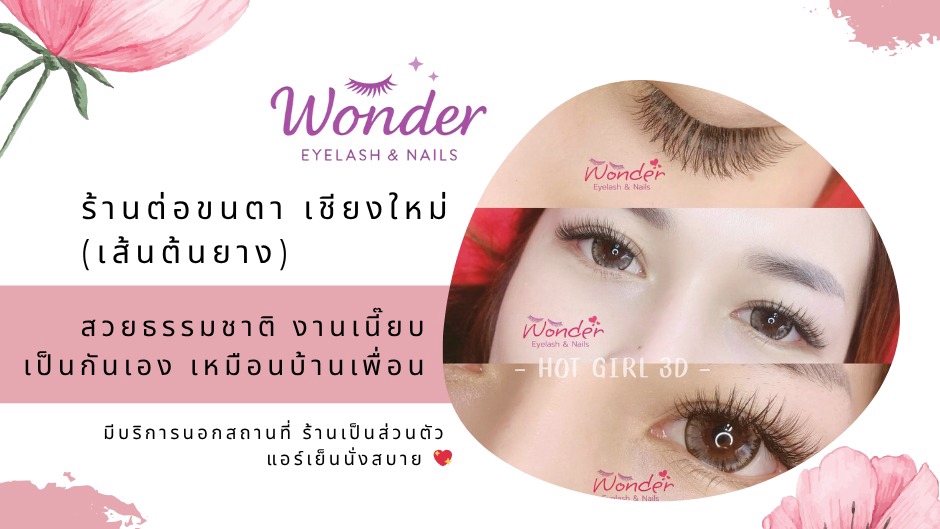 👁️ Wonder Eyelash & Nails | ต่อขนตา เชียงใหม่ (เส้นต้นยาง) เราให้บริการต่อขนตาโดยช่างมือเบาใจดี ในร้านเล็ก ๆ ที่เป็นส่วนตัว แอร์เย็น สะดวกสบาย เหมาะกับทั้งสายหวาน สายฝอ หรือมือใหม่ที่อยากเริ่มลองต่อขนตา ✨ บริการของเรา: - ลิฟติ้งขนตา | เริ่มต้น 499 บาท (ขนตาเด้งธรรมชาติ ไม่ง้อมาสคาร่า) - ต่อขนตาแบบธรรมชาติ Classic Look | เริ่มต้น 599 บาท - ต่อขนตา Y Look / Wet Look | เริ่มต้น 699 บาท - เพิ่มจับช่อหรือดีไซน์พิเศษ สอบถามเพิ่มเติม ❄️ ร้านเป็นส่วนตัว / ไม่แออัด / มีเครื่องปรับอากาศ 🚗 มีบริการนอกสถานที่ในพื้นที่เชียงใหม่ 📍 พิกัดร้าน: เส้นต้นยาง ต.หนองผึ้ง อ.สารภี ตรงข้ามตรอ. เยื้องข้าวแกงวอร์มคอล 🔗 [Google Maps](https://maps.app.goo.gl/w4sDHumZfovpfaz28?g_st=ic) 💖 ต่อขนตากับเราทั้งปลอดภัย เบาสบาย และมั่นใจว่าสวยเป๊ะในแบบที่คุณเป็น