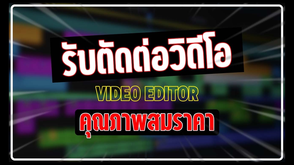 ผลงานตัดต่อ - https://www.youtube.com/playlist?list=PL4uhnbko44xSDEjpJknAYON6ZzjwS8X4L สิ่งที่ท่านจะได้ - งานที่มีคุณภาพ - รูปแบบการตัดต่อที่ท่านต้องการ - สามารถแก้งานได้ - การตัดต่อแบบมืออาชีพ สิ่งที่ลูกค้าควรเตรียมก่อนจ้างงาน - ถ้าท่านมีสคริปต์ลำดับขั้นการดำเนินส่งให้ทางเราด้วย - รูปแบบการตัดต่อ เช่น ฟอนต์แบบไหน, ลำดับภาพหรือเรื่องราวที่ต้องการ, รูปแบบสไตล์วีดีโอที่ท่านต้องการ รายละเอียดราคาเพิ่มเติม - ถ้าวิดีโอมีความยาวเกิน 10 นาทีขึ้นไป *สามารถสอบถามก่อนได้ครับ* ดังนั้นลูกค้าสามารถคุยรายละเอียดก่อนได้ครับ ราคาขึ้นอยู่กับความยากง่ายและความยาวของงาน ** งานไวไว้ใจได้แน่นอนคร้าบ ~ ** ขั้นตอนการทำงาน 1. แจ้งรายละเอียดงานที่ต้องการ 2. ส่งไฟล์ที่ต้องการให้ตัดทาง Google Drive 3. ทางเราส่งตัวอย่างงาน (Draft) 4. ถ้ามีการแก้ไขก็จะแก้ไขงานและส่งให้ท่านตรวจอีกที 5. งาน (Final) ท่านจะได้งานแบบสมบูรณ์แบบพร้อมนำไปใช้งาน