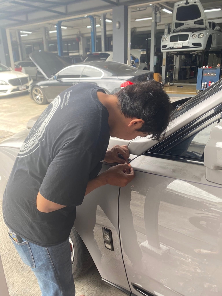 รับลอกฟิล์ม Wrap สีหรือใสกันรอย งานทั่วไป ใช้เวลาลอก 2-3 วัน งานยากขึ้นอยู่กับสภาพฟิล์ม อาจใช้เวลา 3-8 วัน มีบริการได้ถึงบ้านครับ หรือเอารถมาจอดไว้ได้ที่ร้านครับสบายใจได้ 📌การใช้บริการเราต่างจากที่อื่นยังไง 📌 หากฟิล์มที่ลูกค้าติดตั้งอายุ 3 ปีแต่ไปลอกปีที่ 4-5 โอกาศสีเดิมรถหลุดเป็นแผ่นๆจนถึงขั้นต้องไปทำสีมีเยอะมากๆแถว 20-30% และมีโอกาศสีหลุดเยอะ การใช้บริการของทางเราใช้ช่างมืออาชีพด้านนี้โดยเฉพาะ และเลือกน้ำยามีหลายตัวตามอาการแต่ละจุดลดโอกาศลอกจะเหลือต่ำกว่า 5-10% หรือน้อยมากๆ หรือหาหลูกค้าใช้ฟิล์มจีนถูกๆอาจทิ้งคราบกาวเยอะต่อให้ลอกตรงปีโอากาศสีหลุดก็ยังเยอะครับหากเซฟสีเดิมรถหรือไม่อยากให้รถมีประวัติซ่อมสี 🙏🏻เลือกใช้บริการเราเป็นตัวเลือกที่เซฟกว่าโอกาศ สีหลุดน้อยลงกว่าที่ควรจะเป็นเยอะครับและไม่หมกงานแจ้งตามตรง สบายใจได้ครับ 📌 ยกตัวอย่างงานยาก Rolls royce cullinan ที่ผ่านมารถจอดทิ้ง 5-6 ปีกลางแดดประเทศไทย+ฝน ฟิล์มใสกันรอย หมดอายุตั้งแต่ปีที่ 3 และเสื่อมสภาพอย่างแรง ขึ้นเป็นรอย ✅ใช้เวลาทำงานไป 7 วันใช้ช่าง 5 คนทำงาน ลูกค้ารีเควสเน้นงานระเอียดให้สีเดิมรถหลุดน้อยที่สุดให้กระทบสีเดิมรถและเส้นออฟชั่นที่กดเพิ่ม ข้างรถมูลค่าหลายแสน น้อยที่สุดเท่าที่จะเป็นไปได้ ✅ เราใช้น้ำยาที่เหมาะสมกับแต่ละอาการและช่างมืออาชีพ จบงานเส้นที่เป็นออฟชั่นกดเพิ่ม และจุดอื่นๆ ไม่มีสีหลุดครับ ราคาอาจมีเพิ่มตามความยาก และรีเควสเพิ่ม และสภาพฟิล์มว่าแย่แค่ไหน ส่งภาพรถมาก่อนนะครับช่วยกันดูไม่มีค่าใช้จ่ายครับ