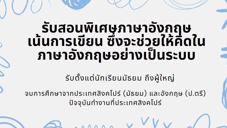 รับสอนพิเศษภาษาอังกฤษ ตัวต่อตัว เน้นการเขียน Essay writing