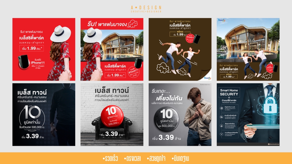 ออกแบบทุกแนว ทุกสไตล์ ผลงานไม่ตายตัว มีประสบการณ์ด้านงานมาแล้วไม่ต่ำกว่า 10 ปี กับบริษัทชั้นนำ ทั้งด้านอสังหา คอสเมติค นิตยสาร โฆษณา และมีผลงานด้าน Freelance กว่าหลายชิ้น คุณจะไม่ผิดหวัง ถ้าให้ผมทำ และรับผิดชอบ ผมยังสามารถให้คำแนะนำในการออกแบบ แนวทางการวาง การใช้ฟ้อนต์ หรือการใช้สี เพื่อไม่ให้หลุดจาก Concept ของงาน หรือโปรดักดิ์อีกด้วย ขั้นตอนการทำงาน 1. คุยรายละเอียดของงาน แนวทาง และสไตล์ของงานที่อยากได้ ถ้ามี Ref หรือ Draft ไว้ สามารถส่งให้ดูได้ 2. เมื่อคุยรายละเอียดเสร็จแล้ว กดเลือก Package ที่ต้องการ และชำชำระเงิน เมื่อสถานะเป็นชำระเงินแล้ว ถึงจะเริ่มดำเนินการ 3. ส่งตัวอย่างแรกให้ดู และตรวจสอบข้อมูล พร้อมทั้งองค์ประกอบของภาพ และพร้อมรับ Comment จากลูกค้า (ไฟล์งานดราฟแรกจะมีลายน้ำ) 4. เมื่อรับ Comment แล้ว จะเริ่มแก้ไข แล้วส่งให้ดูอีกรอบเพื่อให้ลูกค้าพอใจกับผลลัพธ์ (พร้อมมีลายน้ำ) 5. ส่งชิ้นงานอีกครั้ง (พร้อมลายน้ำ) เมื่อคุณลูกค้ากดอนุมัติงานแล้ว เราจึงจะส่งไฟล์ที่สมบูรณ์ให้ (ไม่มีลายน้ำ)