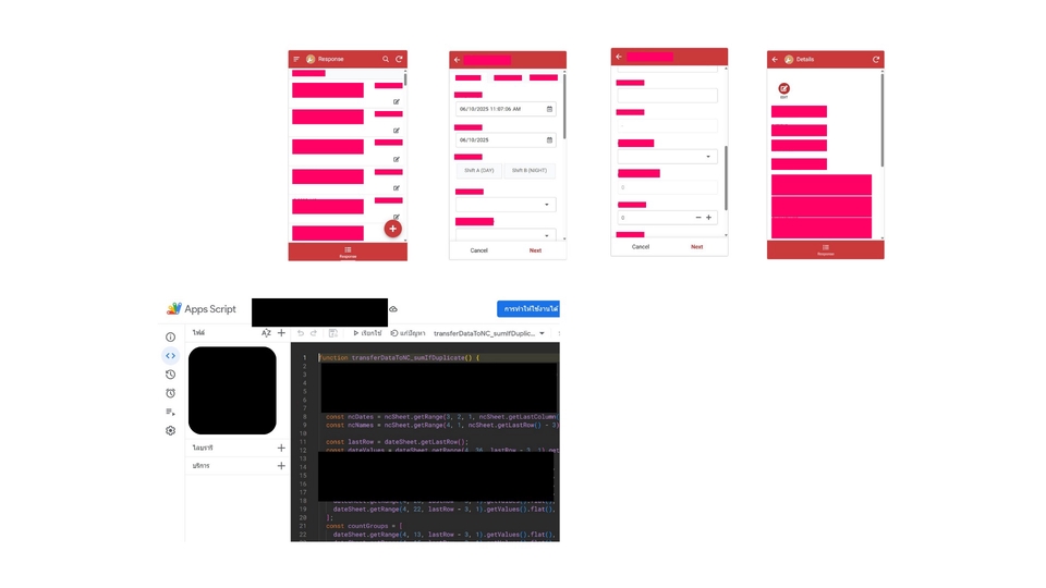 ระบบนี้ใช้ AppSheet สำหรับรับข้อมูลจากผู้ใช้งานผ่านแบบฟอร์ม ซึ่งสามารถเชื่อมต่อกับ Google Sheets เพื่อใช้เป็นฐานข้อมูลหรือตัวเลือกคำตอบต่าง ๆ ข้อมูลทั้งหมดจะถูกจัดเก็บใน Google Sheets และประมวลผลด้วย Google Apps Script เช่น การส่งข้อมูล หรือบันทึกไฟล์แยกลงใน Google Drive นอกจากนี้ยังสามารถสร้าง Dashboard ผ่าน Looker Studio เพื่อแสดงข้อมูลแบบ Real-time ได้อย่างสะดวกและเข้าใจง่าย
