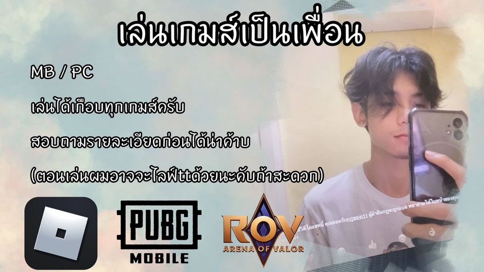 อยู่เป็นเพื่อน/เล่นเกมส์ roblox : rov : pubg mobile