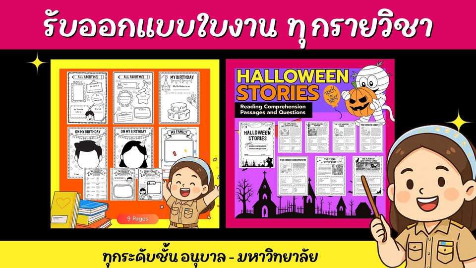 รับออกแบบใบงาน สื่อการสอน ทุกรายวิชา ทุกระดับชั้น