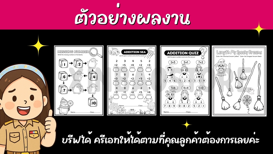รับออกแบบใบงาน สื่อการสอน ทุกชนิด ทุกรายวิชา ทุกระดับชั้น งานดี มีคุณภาพ ทำด้วยความใส่ใจและตั้งใจทุกชิ้นแน่นอนค่ะ รายละเอียดสามารถตกลงกันได้ค่ะ ^_^ ขอบคุณที่ให้โอกาส xinbaostore ได้รับใช้นะคะ