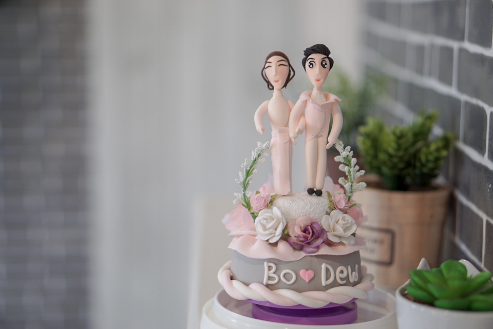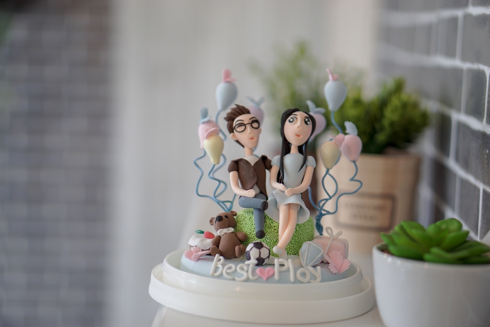 ฿1,490งานปั้นโมเดล 2ตัว พร้อมของตกแต่ง เช่น ลูกโป่ง ตุ๊กตาหมี ดอกไม้ + ที่ครอบใสทรงกลม