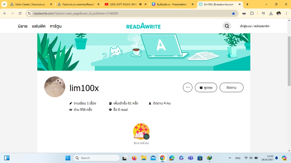 เขียนได้ทุกแนว โรแมนซ์ วัยรุ่นวัยใส แฟนตาซี แฟนฟิค(ไทย) อิโรติก NC20+ เรื่องสั้น 1 ตอนจบ นิยาย 1-15 ตอนจบ ชายหญิง / ชายชาย รูปแบบ DOC / PDF ขั้นตอนการทำงาน 1.พูดคุย สอบถามแนวนิยายจากข้างต้น 2.มี Plot ให้ / นักเขียนคิด Plot เอง 3.ประเมินราคา พร้อมชำระเงิน 4.ส่งตัวอย่างงาน (แก้ไขได้ 2 ครั้ง) 5.ส่งงานจริง (จบงาน) ขั้นตอนการทำงาน 1. พูดคุย สอบถามแนวนิยาย 2. มี Plot ให้ / นักเขียนคิด Plot ให้ 3. ประเมินราคา พร้อมชำระเงิน 4. ส่งตัวอย่างงาน แก้ไข 5. ส่งงานต้นฉบับ ถือว่าจบงาน