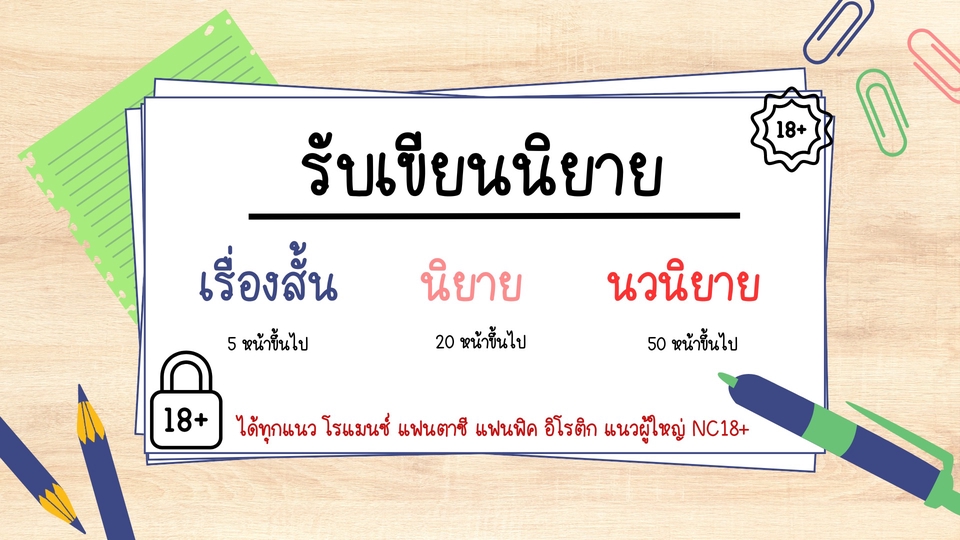 รับเขียนนิยาย เรื่องสั้นโรแมนซ์ แฟนตาซี แฟนฟิค อิโรติก NC20+