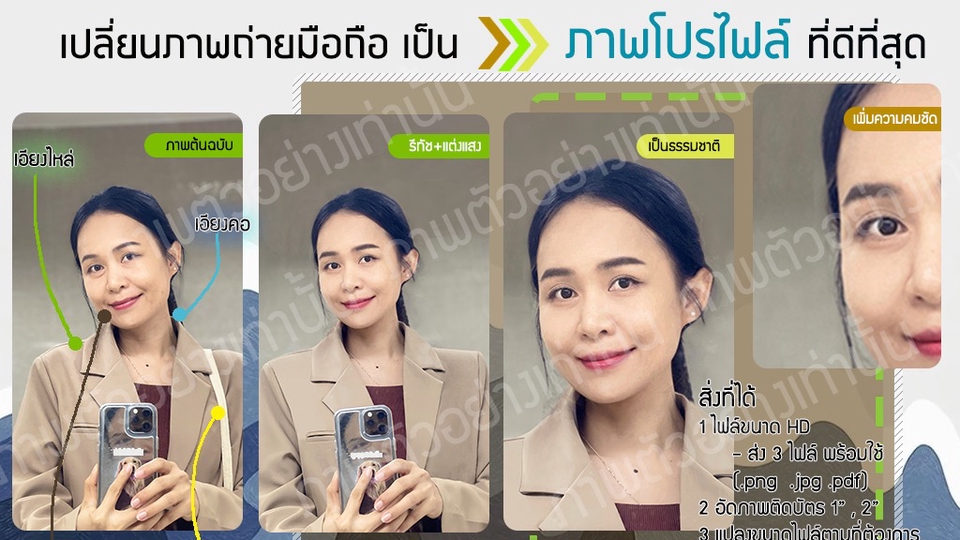 รับเปลี่ยนรูปมือถือ เป็นรูปโปรไฟล์พร้อมใช้ใน Resume/CV แบบมืออาชีพ