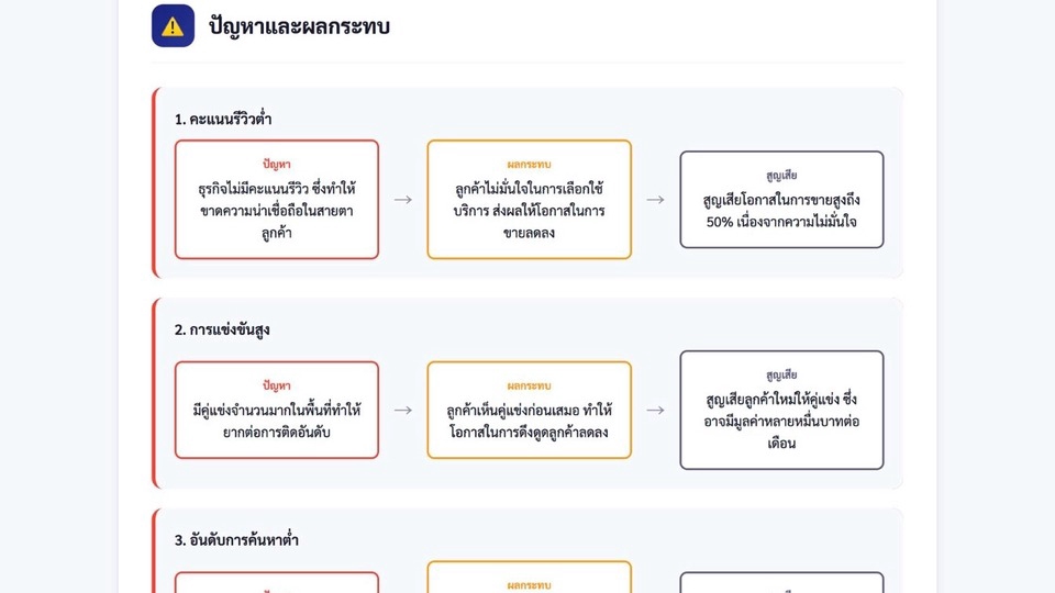 - • 🔹 สร้างความน่าเชื่อถือ (Trust & Reviews)