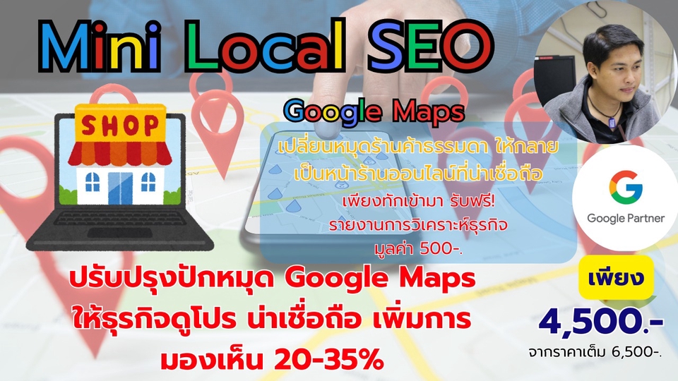 รับทำ Mini Local SEO ปรับปรุงปักหมุด Google Maps ให้ธุรกิจดูโปร น่าเชื่อถือ เพิ่มการมองเห็น 20-35%